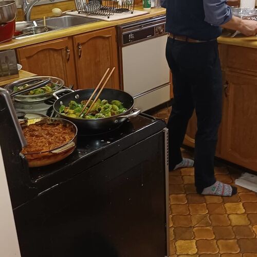 私達だけ 静かに過ごして もう 30日、ぼおっとしていると あっという間に日が過ぎます。 クリスマス デイ 娘とマシュー君、午後一番で 付け合わせ野菜の仕上げ、 せめて 洗い物でも、、、と Mosshavenが ちかづくと、、、 お願いだから、、向こうに行って…